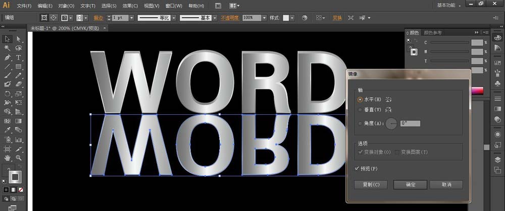 7、按Alt键复制上面的文字,单击右键选择变换-对称,选择水平,单击确定 。