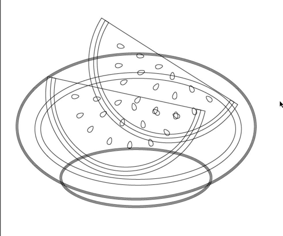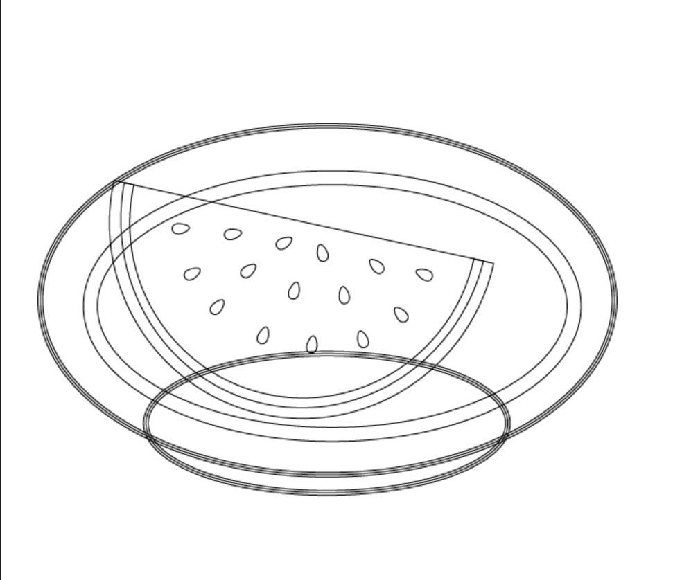 2、在盆子的路径上面画出一片西瓜的路径,把其中的西瓜肉、瓜子、瓜皮一一绘制清楚。