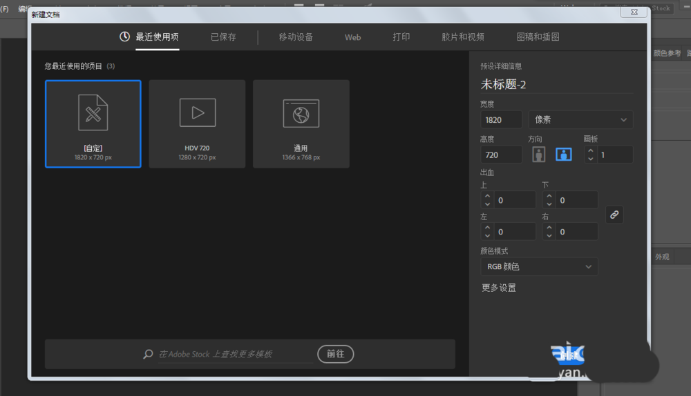 1、新建一个1820*720像素的文件,颜色模式RGB。