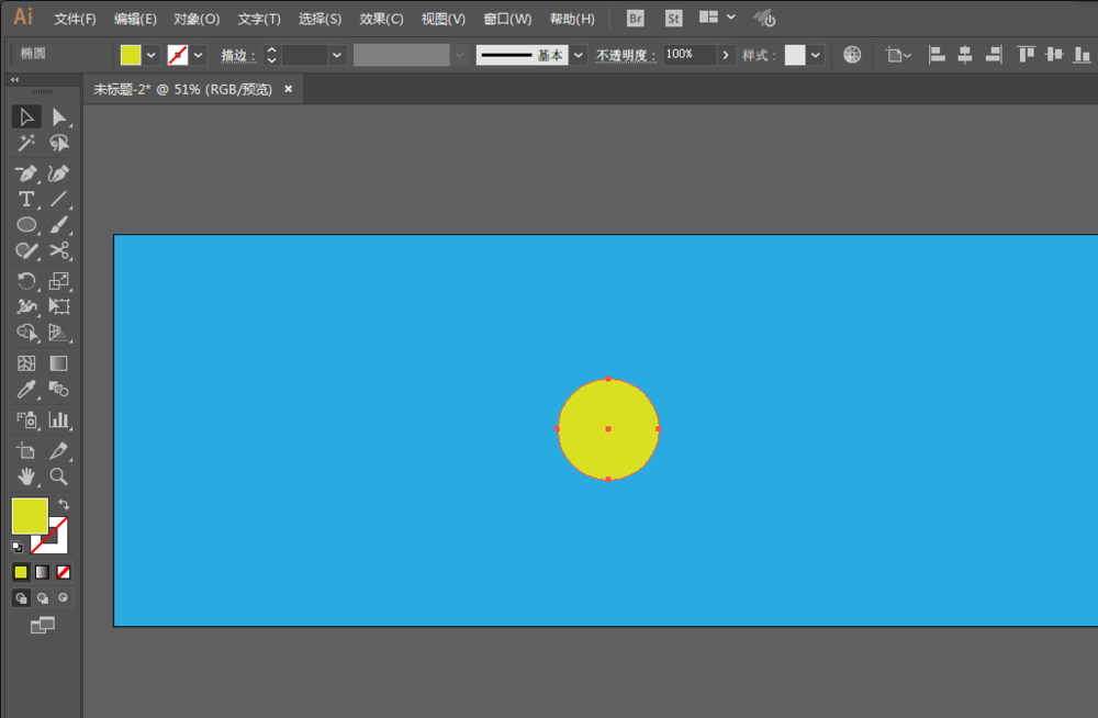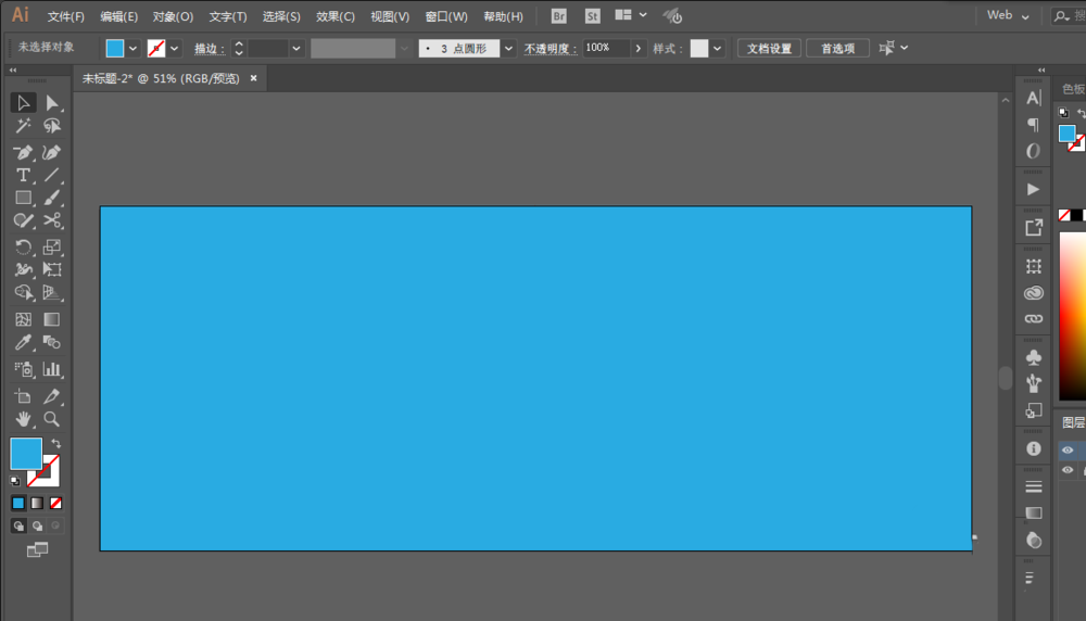 2、用矩形工具绘制一个和画板一样大小的长方形,填充颜色。