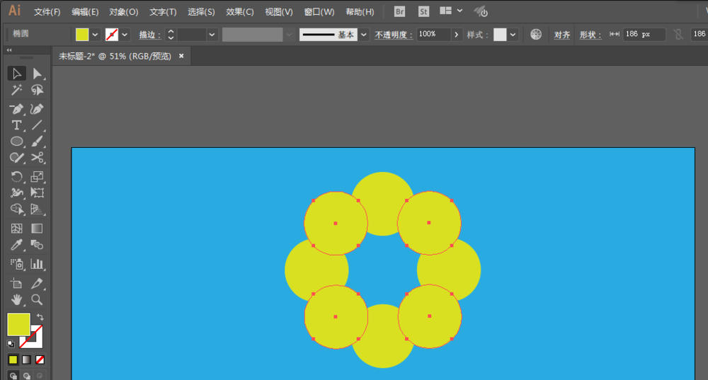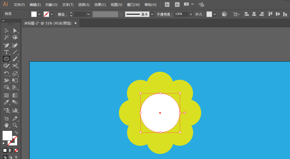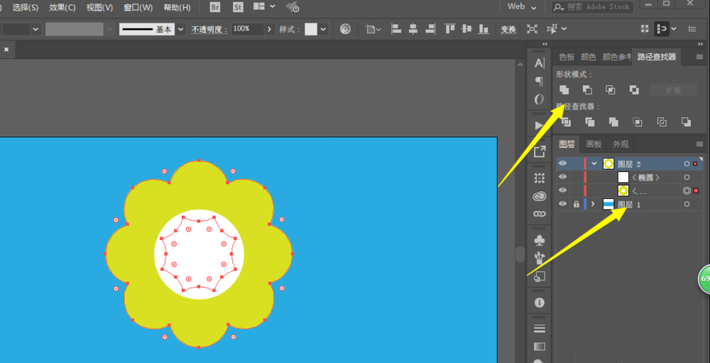 4、全选再旋转复制,用椭圆工具绘制圆形在中间。底层的圆形进行联集。