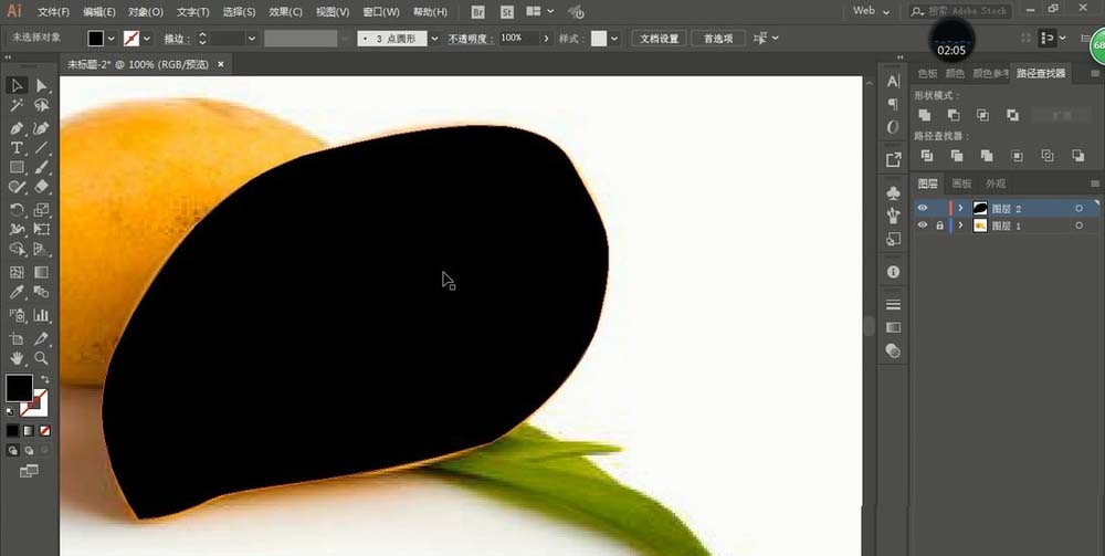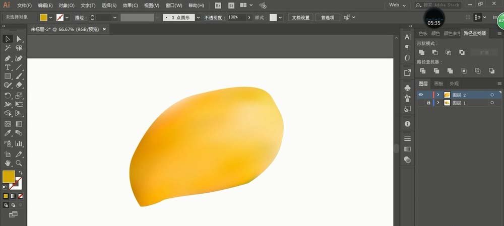 3、用钢笔工具绘制芒果的轮廓出来,填充颜色,描边颜色不选择。