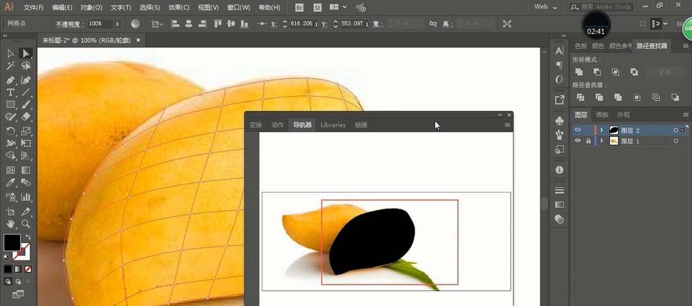 5、打开窗口-导航器,然后隐藏钢笔工具绘制的图形。