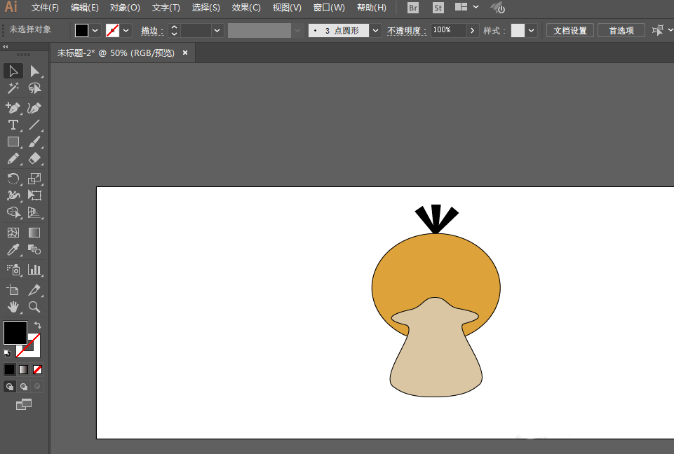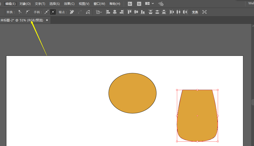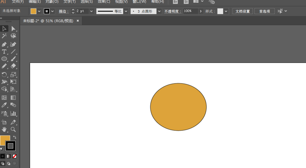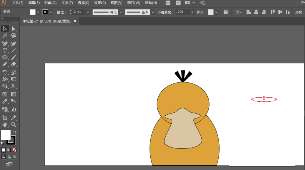 1、新建一个文档,用椭圆工具绘制椭圆形,填充颜色,描边颜色为黑色。