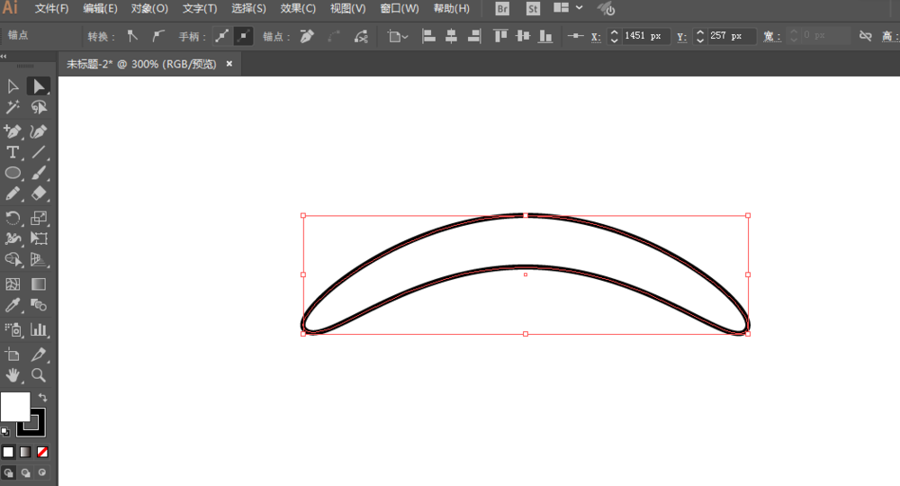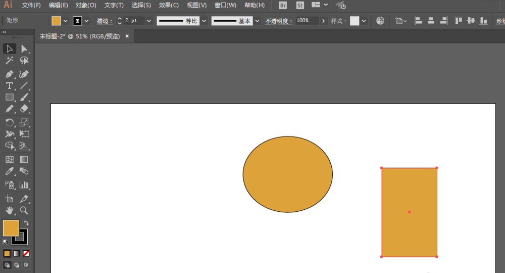 2、矩形工具绘制长方形,调整锚点位置和形状。
