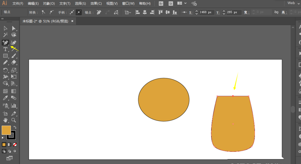 3、添加锚点,并且修改为平滑。调整一下顶部。