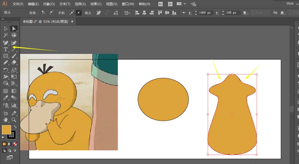 想要画口袋妖怪可达鸭,该怎么画这个卡通角色呢?下面我们就来看看ai画可达鸭的教程。