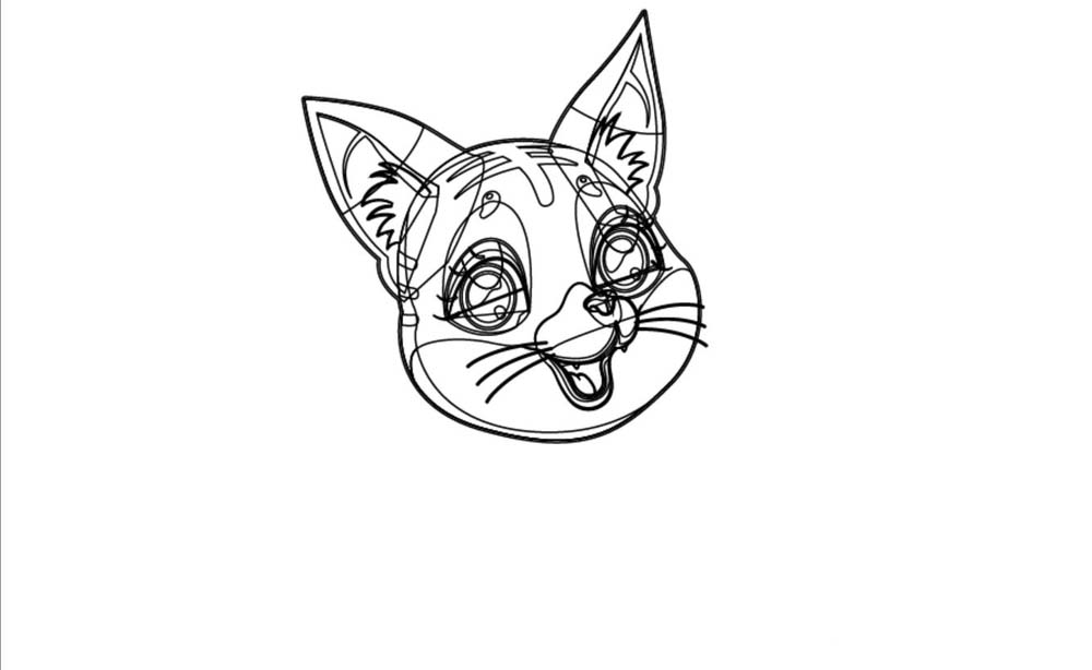 2、继续画出小猫的两只大耳朵,耳朵有着很细节化的内外层次。