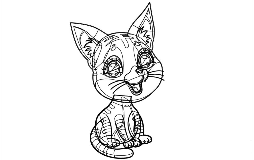 3、最后画出小猫的身体与尾巴,还有小猫身上的花纹。