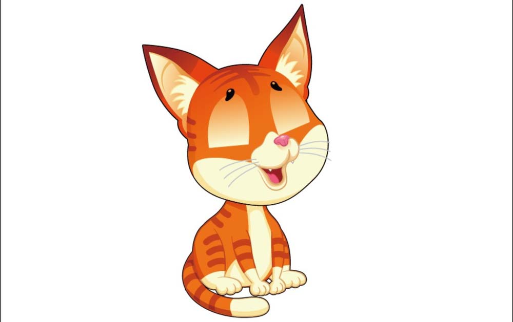 4、我们用两种灰白色填充小猫胸前的皮毛区域,用橙红色填充小猫的身体,用橙红色的渐变填充花纹里面的暗横条。小猫的脚也用灰白色来填充。