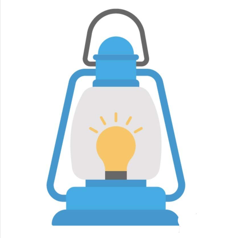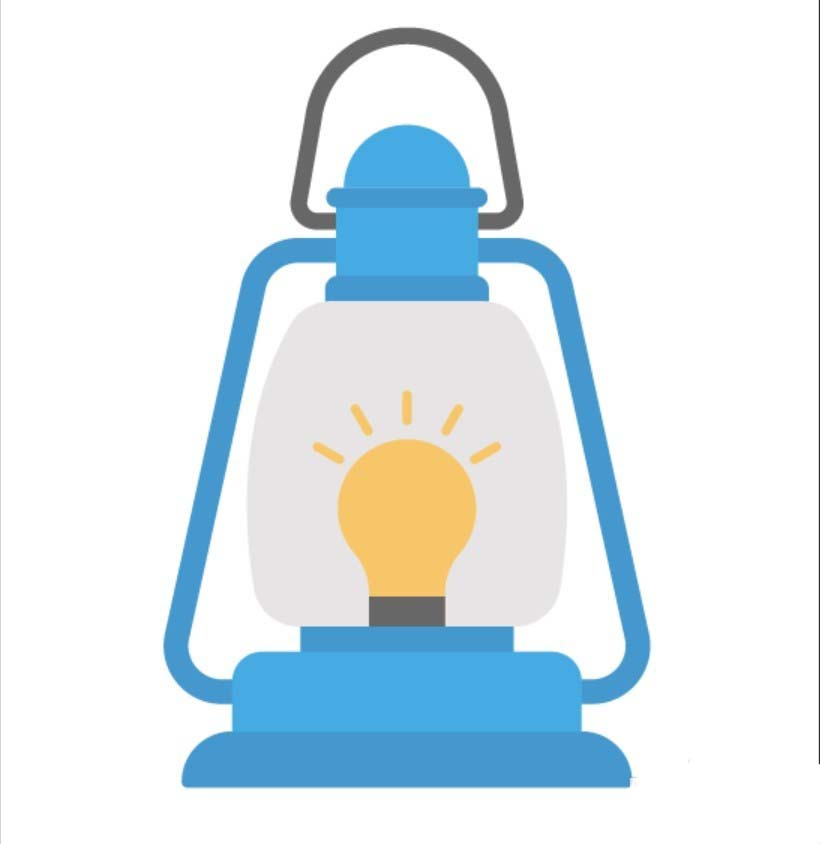 6、用灰白色填充手提灯的灯管玻璃罩,内部的灯泡用橙黄色填充,灯光也用橙黄色,灯泡的底部用灰黑色填充,手提灯图片设计完成!