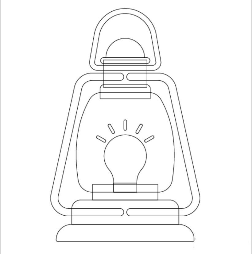 2、用钢笔画出手提灯的灯管,再画出里面的灯泡与灯光的路径。