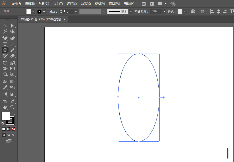 2、用椭圆工具绘制椭圆形,填充颜色描边颜色任意先选择。
