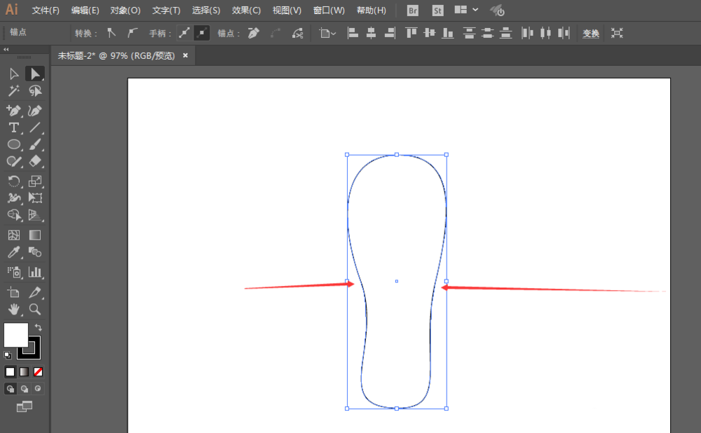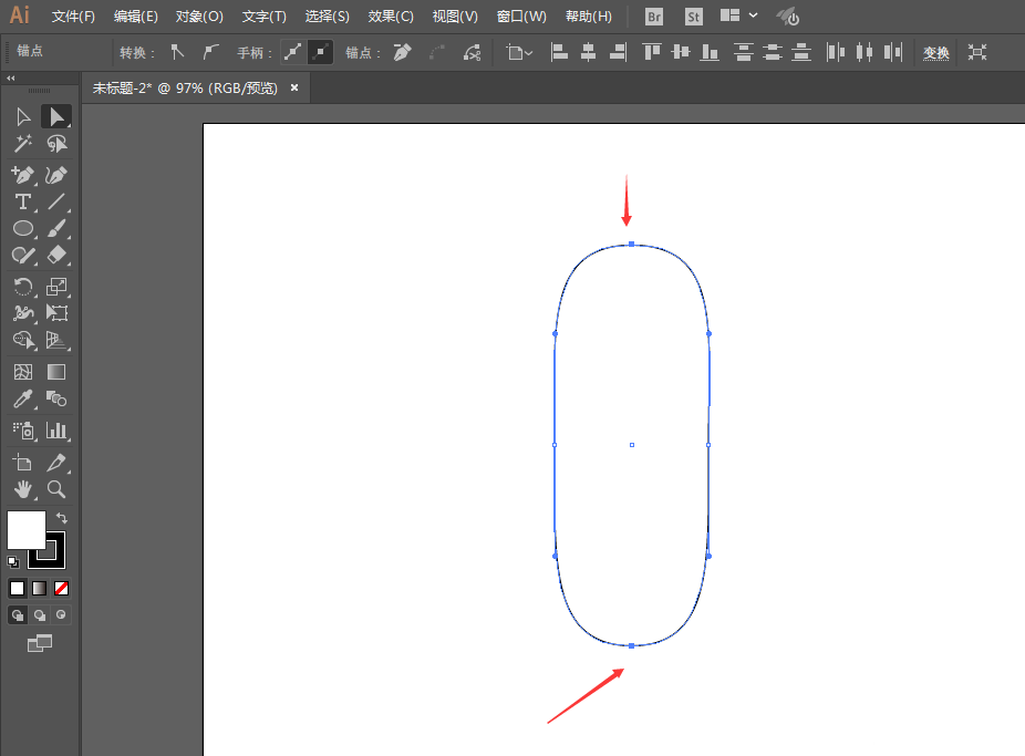 3、在上下两个点添加锚点。用直接选择工具选择中间两个点,然后改为平滑。