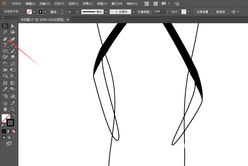 4、用钢笔工具绘制带子,把描边的形状改变一下,加粗,然后用钢笔工具绘制里面那一层。