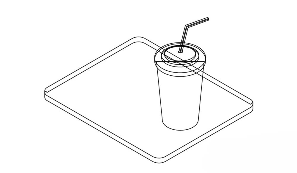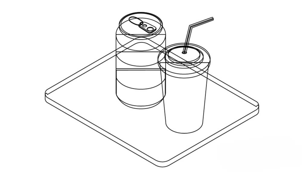 1、用曲线工具画出餐盘的基本形状,再画出一个塑料饮料杯的轮廓,我们可以使用圆形与矩形工具的组合画出杯口与杯身。
