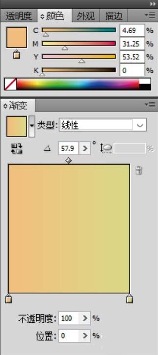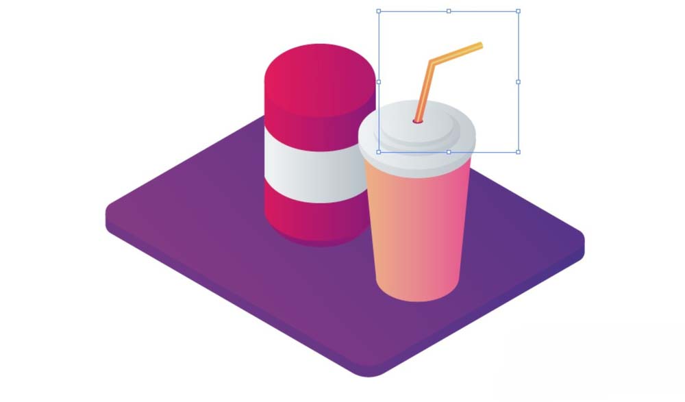 5、用淡橙色的渐变填充吸管的两个路径,中间的连接部分用淡黄色填充,用粉红色的渐变与灰白色的渐变填充左侧的易拉罐的罐体。