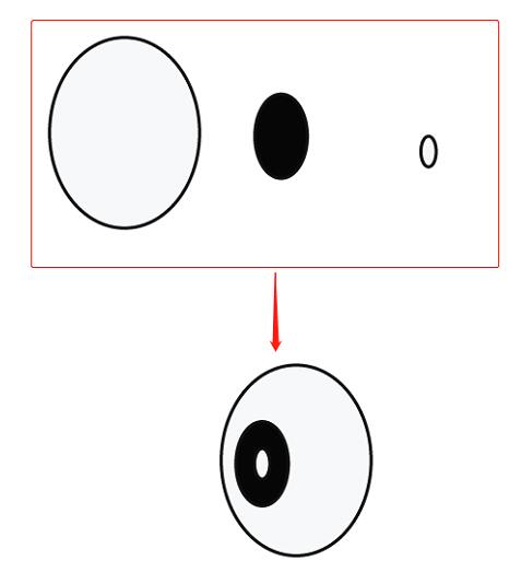 用椭圆工具绘制眼睛,如图画三个椭圆,叠加在一起一个眼睛就绘制好了。原图上干扰太多,可以在旁边做好后再放到图形中去