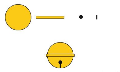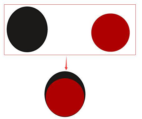 绘制一个黑色的椭圆和一个红色的正圆,把它们叠放到一起。