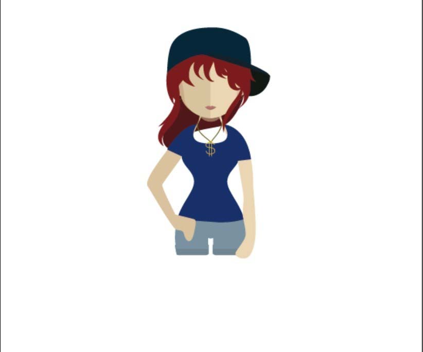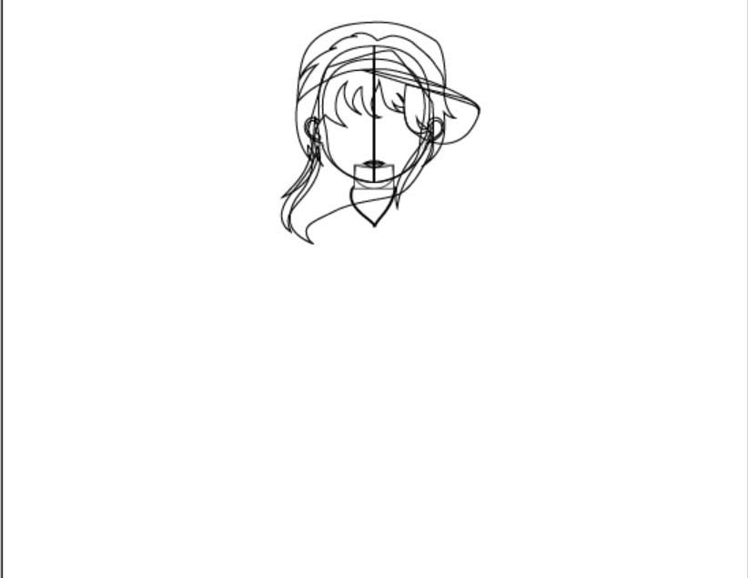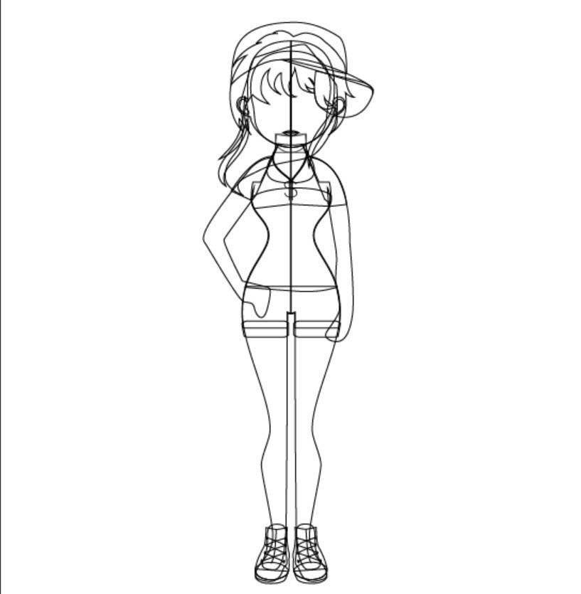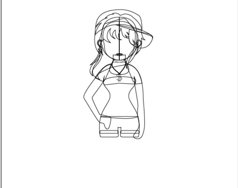 2、画出女生的手臂与短袖的基本轮廓,还有帽子、项链等重要的元素。