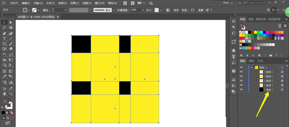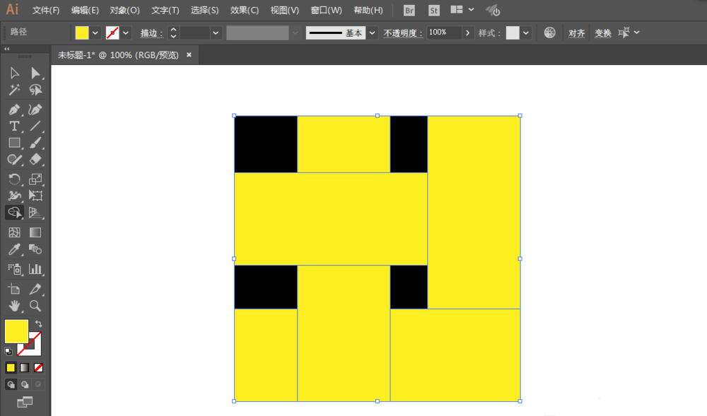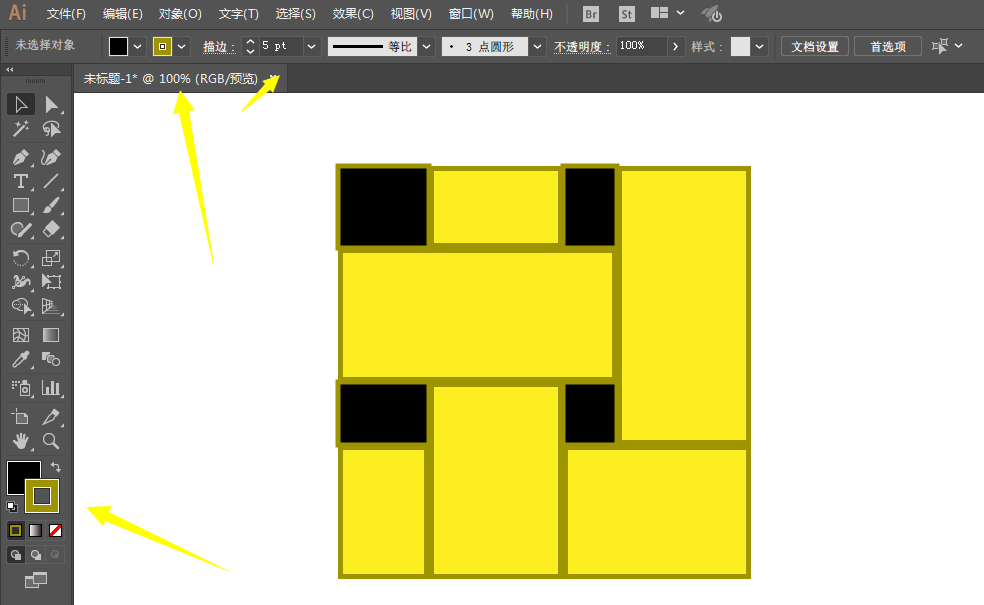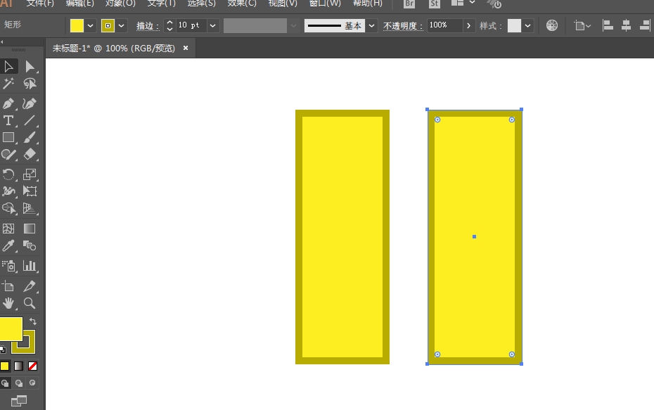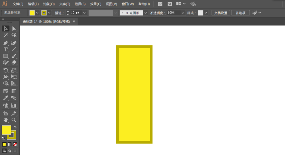1、新建一个文件,用矩形工具绘制一个长方形,填充黄色,描边颜色选择黑色。