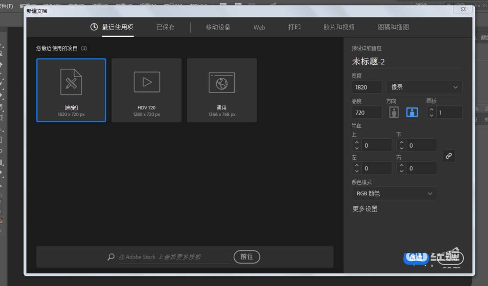1、新建一个1820*720的文件。