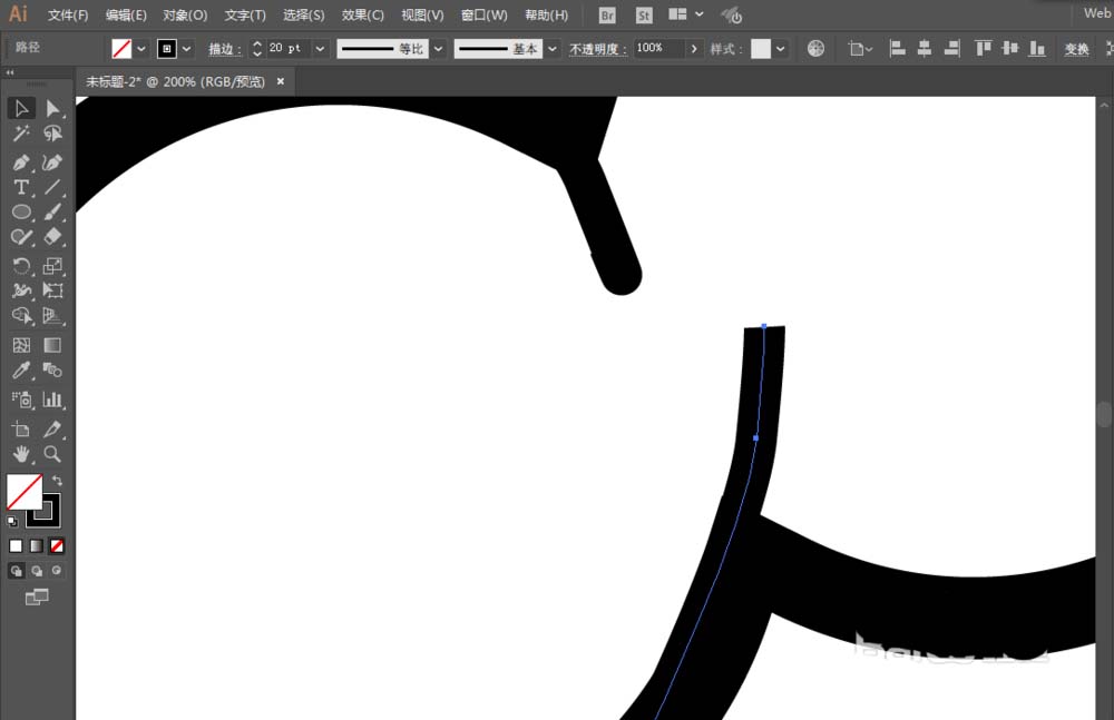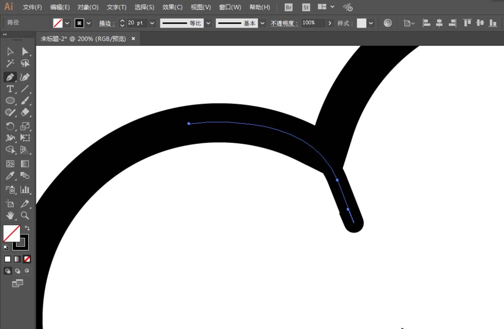 4、用钢笔工具绘制路径。并且填充宽度。