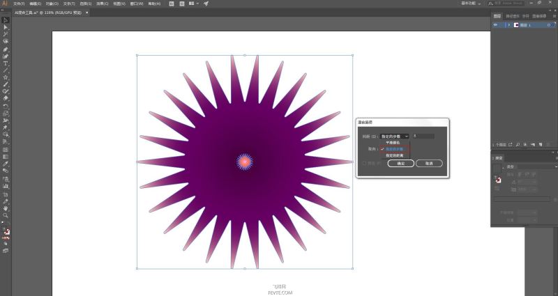教程结束,以上就是关于AI混合工具和效果工具制作炫丽抽象花朵教程的全部内容,AI中的混合工具和效果工具是很好用的工具,如果学会了可以实现很多很多神奇的效果,可以很好的帮助我们做出理想的设计。不过这其中的知识点也有很多,需要花些时间去好好学习,以后我也会分享一些相关的教程。大家一起加油吧!