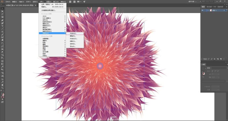 继续选中图形,在"效果"工具栏中选择"风格化"中的"内发光"命令