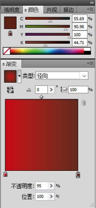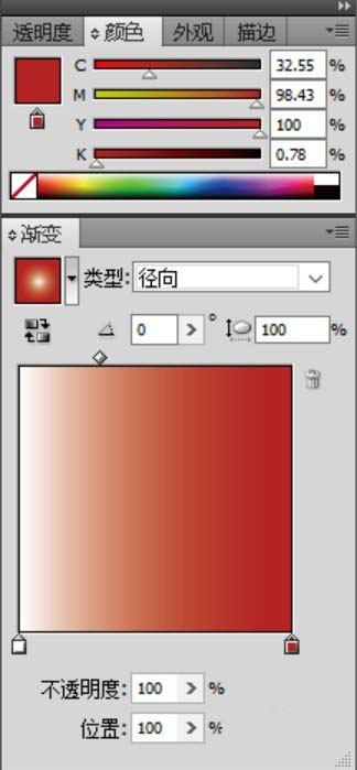 5、设置一个白色到红色的渐变,我们填充圆形以红色的径向渐变。