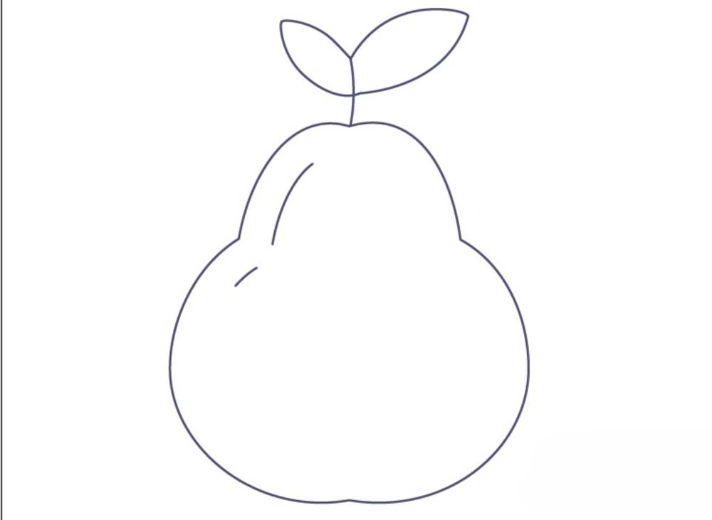 1、用曲线工具绘制出梨子的基本轮廓,表面的一些纹理也用线条勾勒一下。