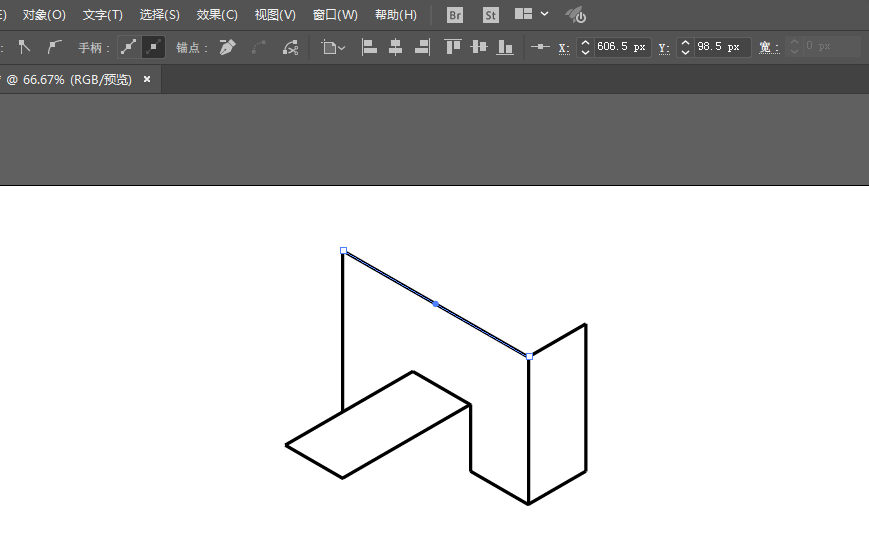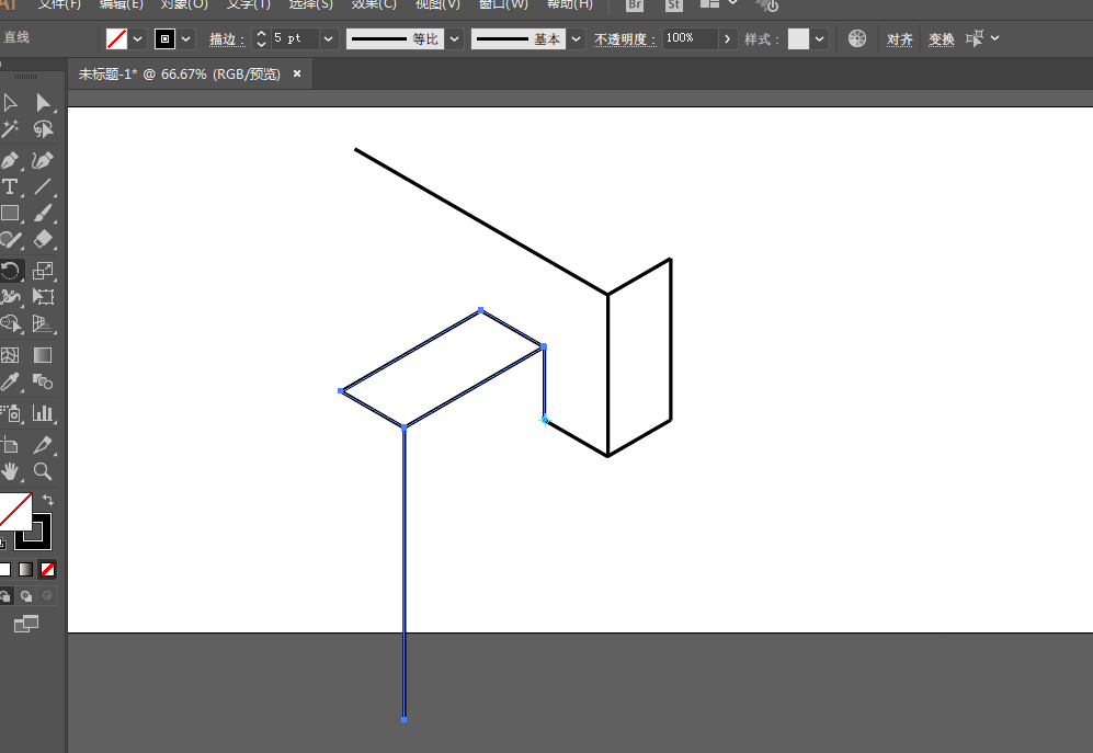 5、移动直线,删除不要的锚点,连接锚点,对齐关键锚点。