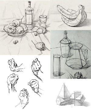素描从表现形式分为结构素描和明暗素描。结构画法侧重与表现物体的内部结构。