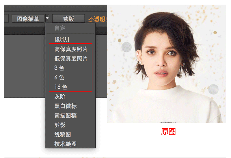图像描摹——高保真度照片/低保真度照片/3色/6色/16色,正常用这5个模式新手也能快速的分析出造型中的明暗结构关系。去找了一张光影结构关系还可以的试一下。(大家可以多找光影结构好的图片,看看系统规划的结构是什么样的?)