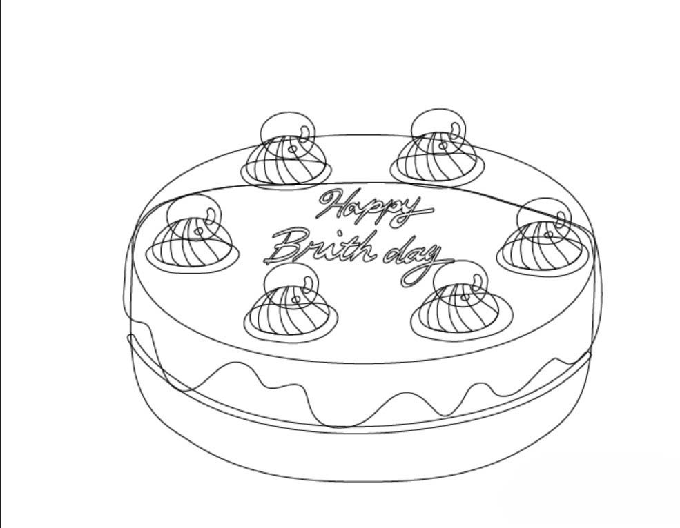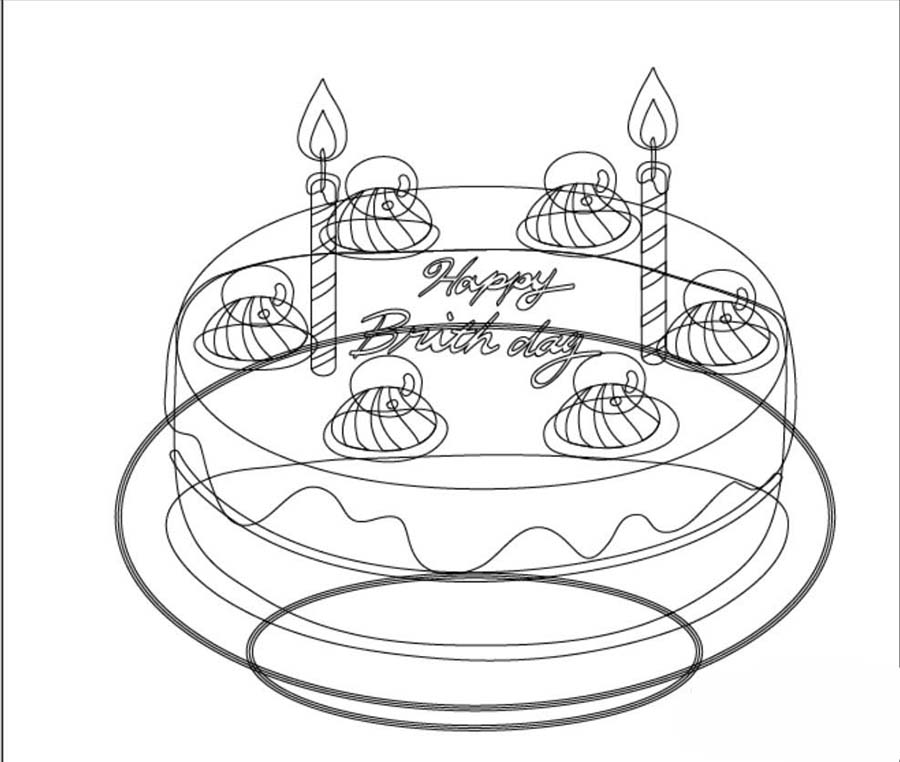 1、先画出一个蛋糕的基本结构与层次,奶油、蛋糕、蛋糕上面的文字等等元素。