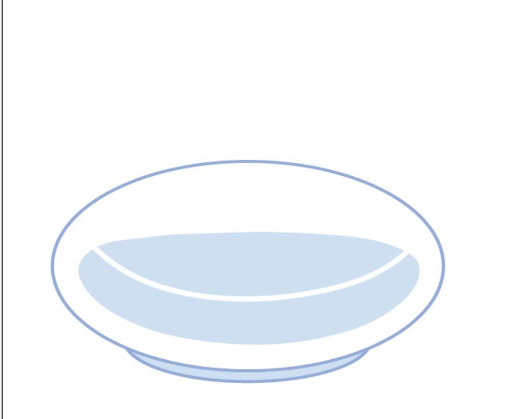 4、先用淡蓝色填充盆子的阴影区域,用淡蓝色对于盆子的边缘进行描边。