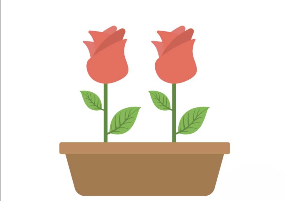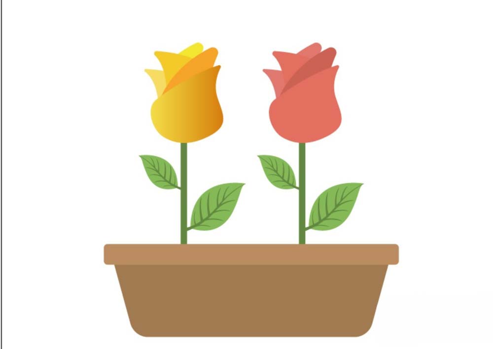 7、对于花盆简笔画教程来说,我们要画出不同的效果就要有一点点的创新,另外一朵用橙色的渐变来填充花朵,从而让花朵的感觉更加的美丽与出众,双生花也有了新感觉。