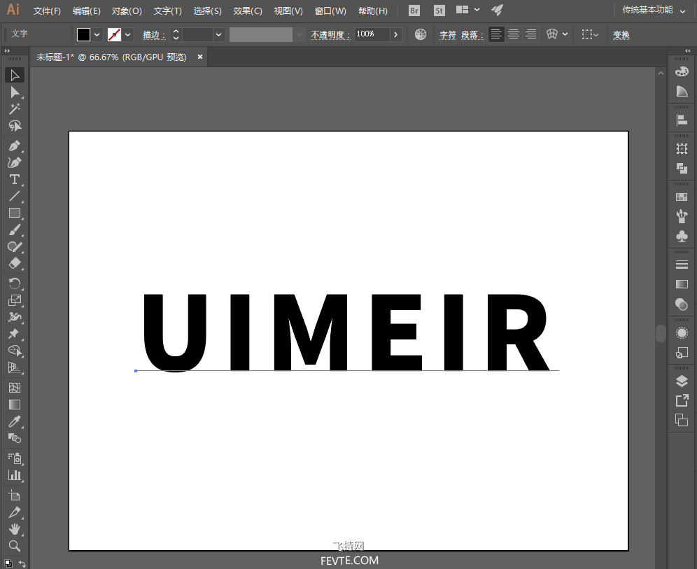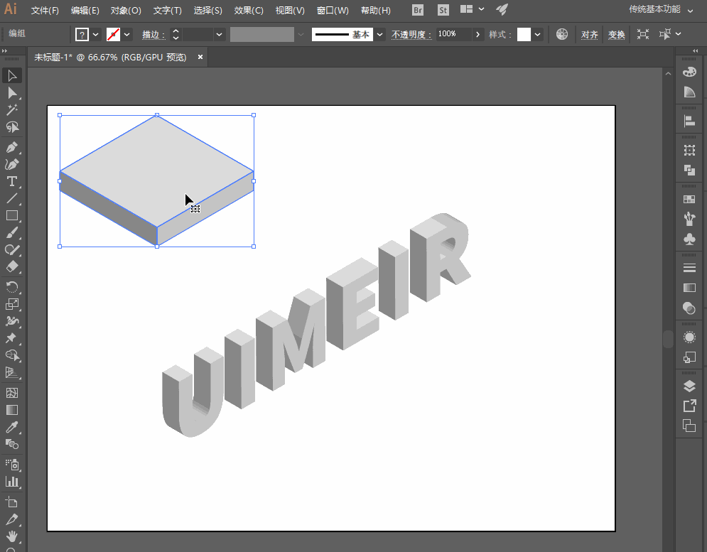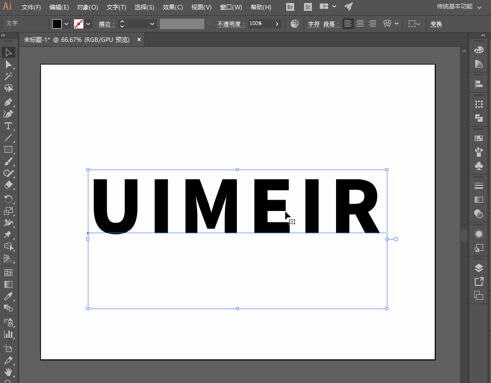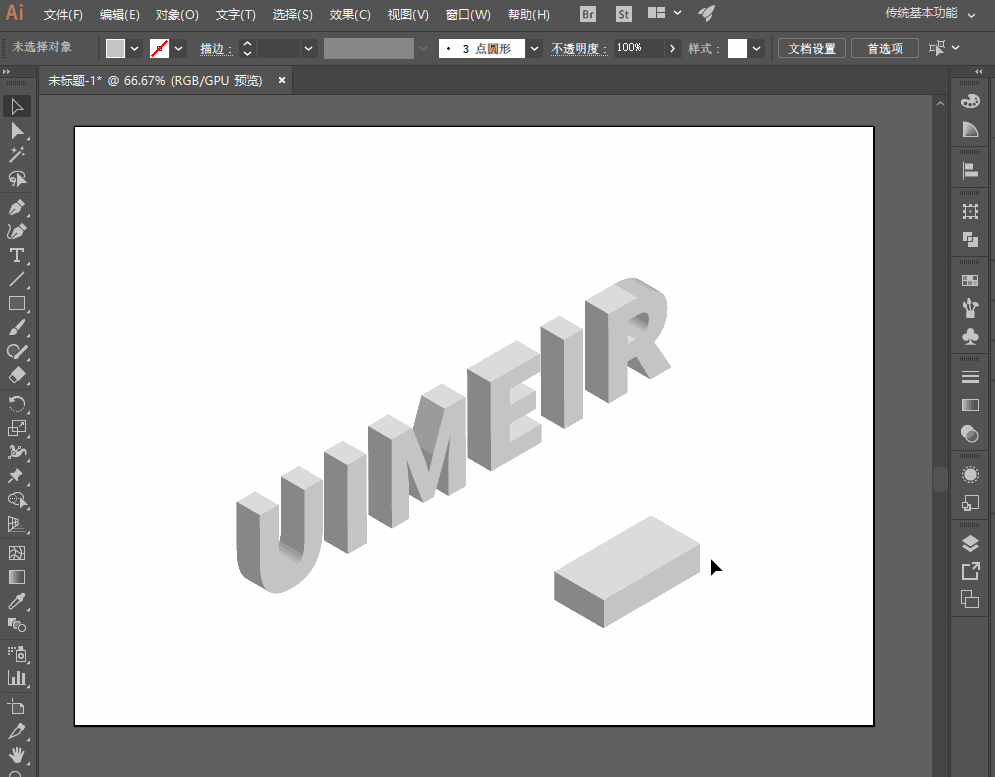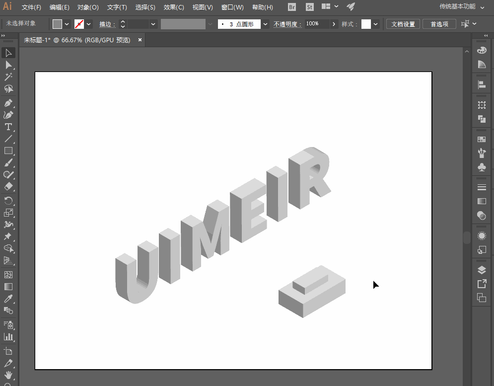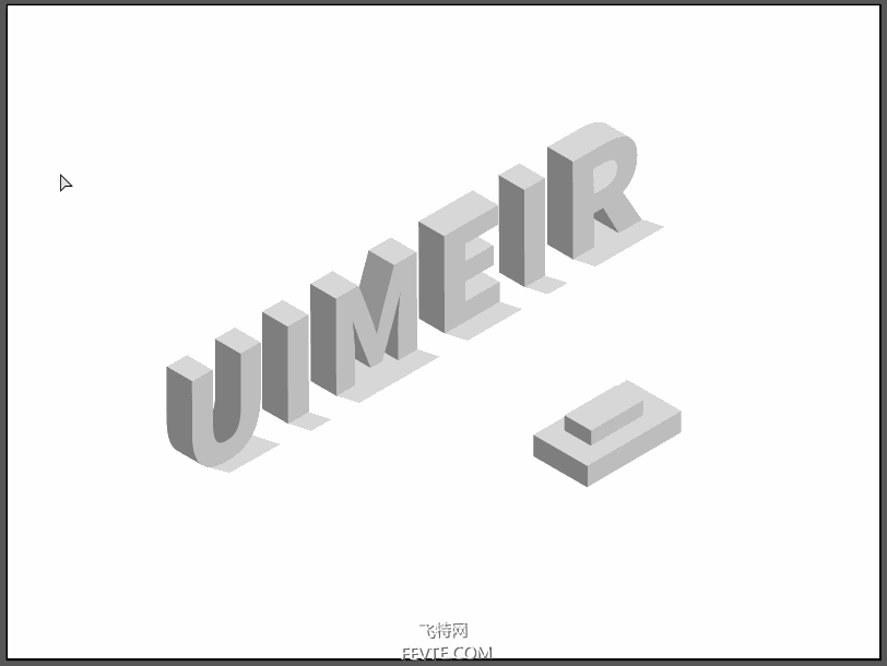 第3步:做文字3D造型,选择文字工具,输入"UIMEIR",并设置文字属性,动图:(此处文字,你可以用你的名字或者品牌名称都可以)