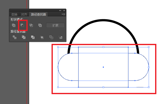 9、选中圆角矩形和矩形工具,单击减去顶层按钮,如图所示: