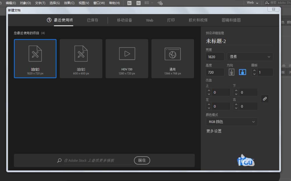 1、新建一个1820*720,颜色模式RGB的文档。