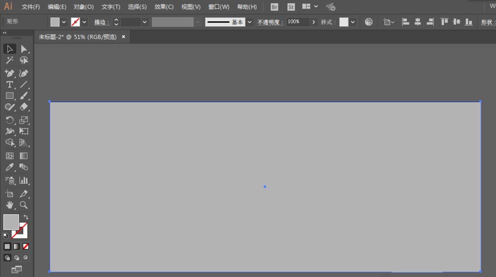 2、用矩形工具绘制一个和画板一样大小的矩形,填充灰色,描边颜色不选择。
