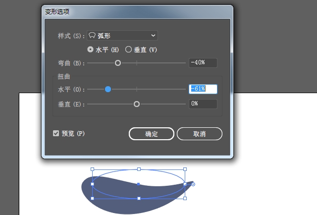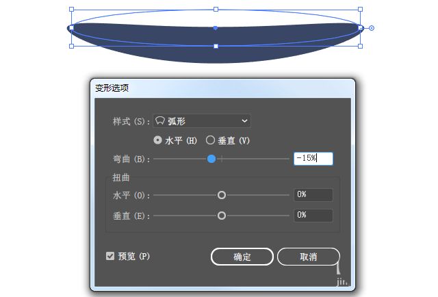 11、【椭圆】工具,填充#525e7b,【效果】-【变形】-【弧形】,【对象】-【扩展外观】
