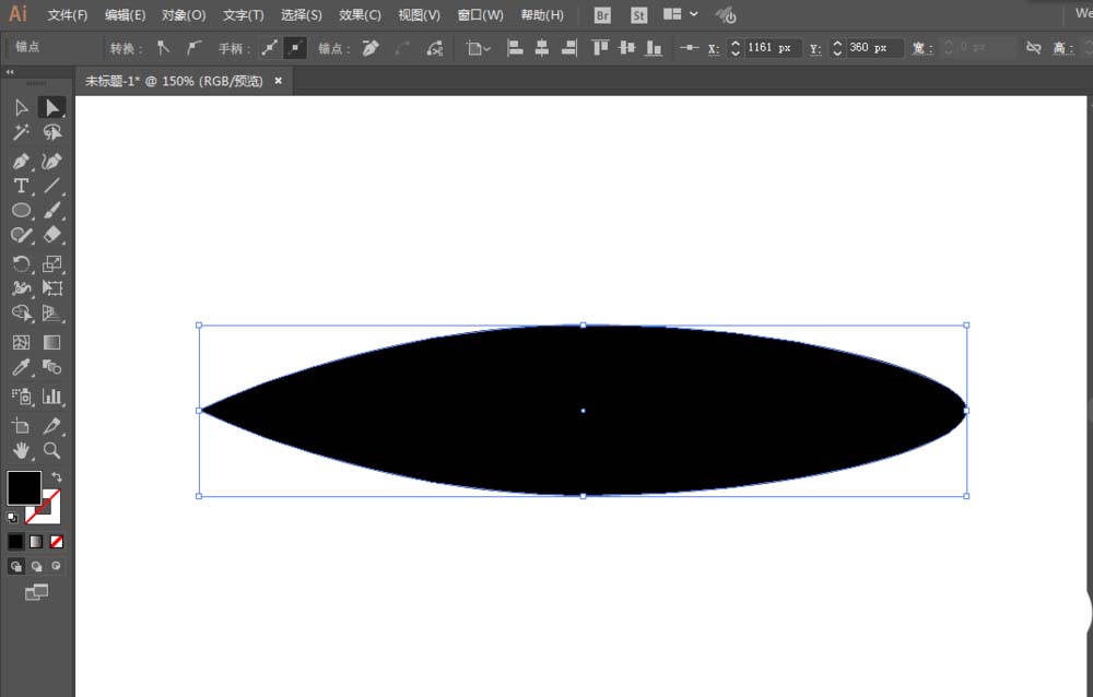 1、用椭圆工具绘制椭圆形,用直接选择工具把两边锚点改为直角。