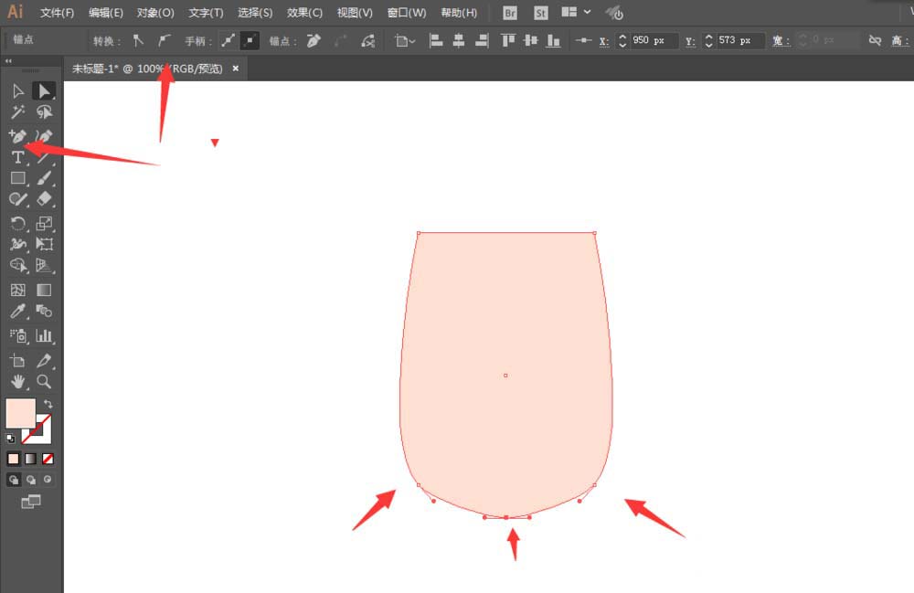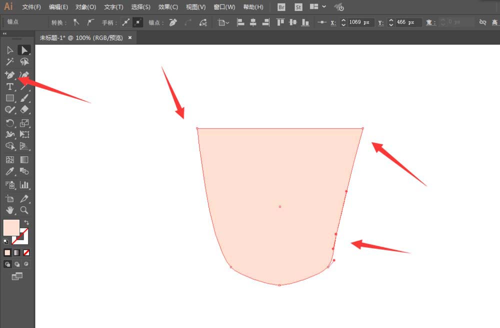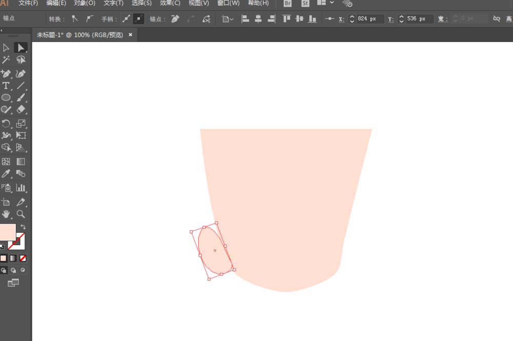 3、绘制耳朵部分,注意用直接选择工具调整锚点位置。