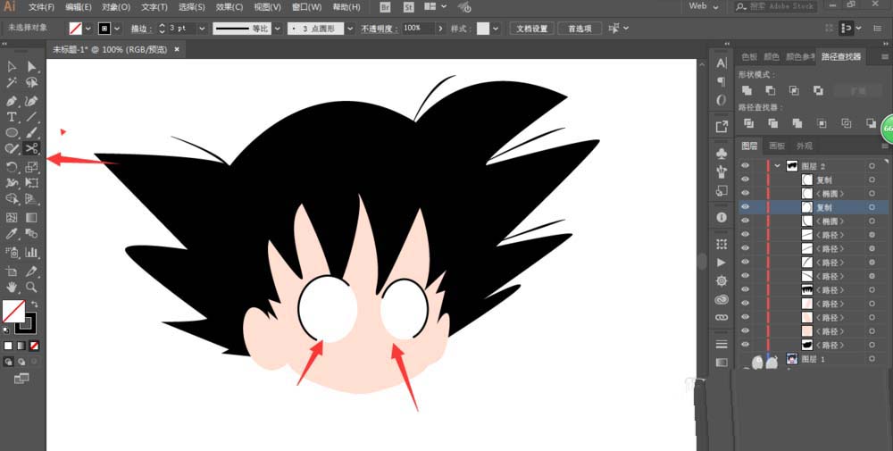 5、眼睛部分用椭圆工具即可。剪刀工具减去不要的部分。