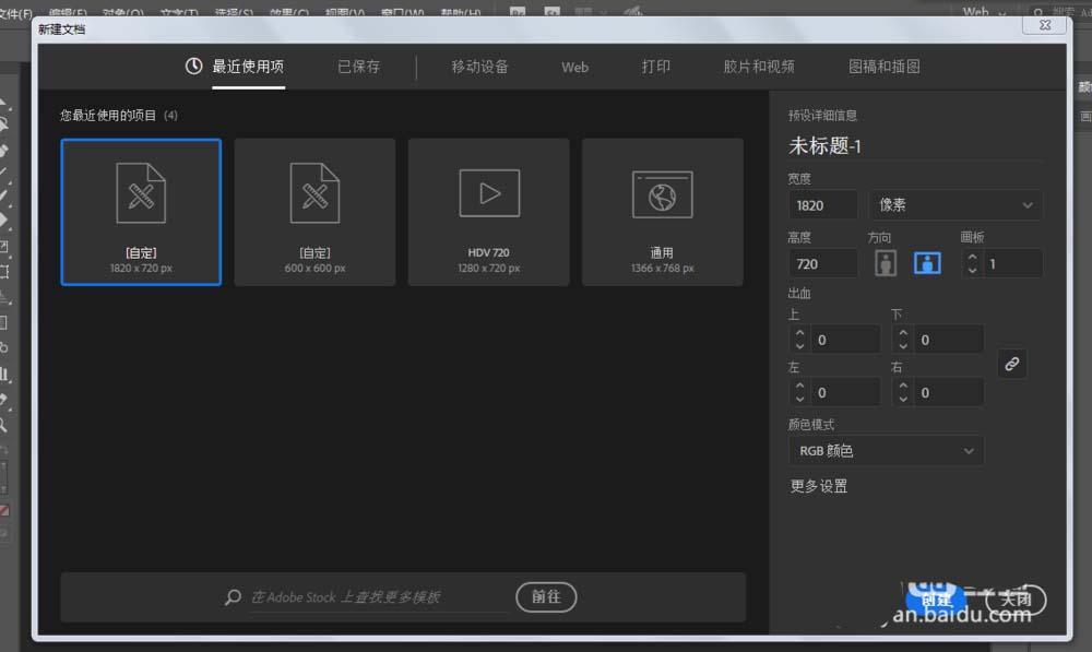 1、新建一个1820*720,颜色模式RGB的文档。
