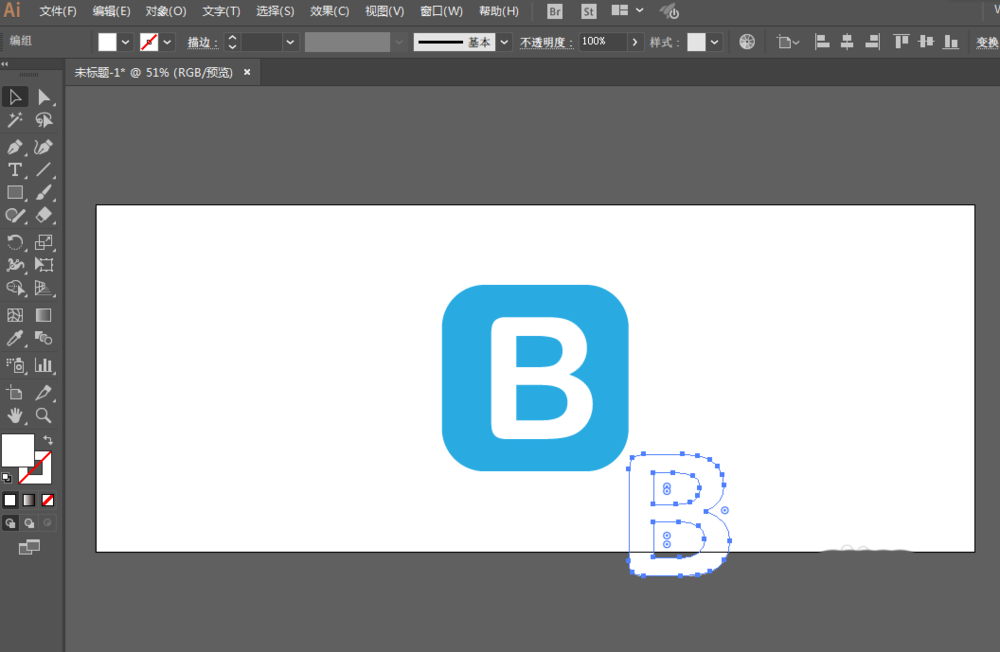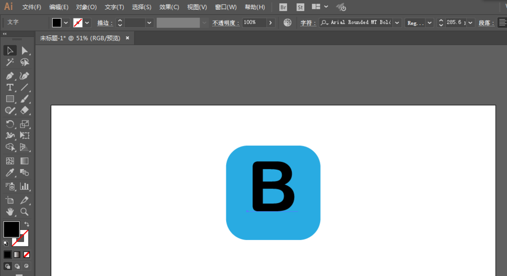 3、拖动为圆角,用文字工具填写字母,进行扩展。