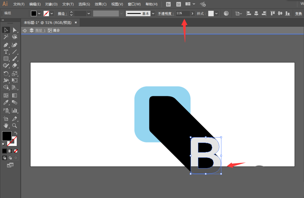 5、前后都改为黑色,然后改变后面的透明度和整体的透明度。