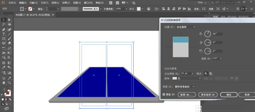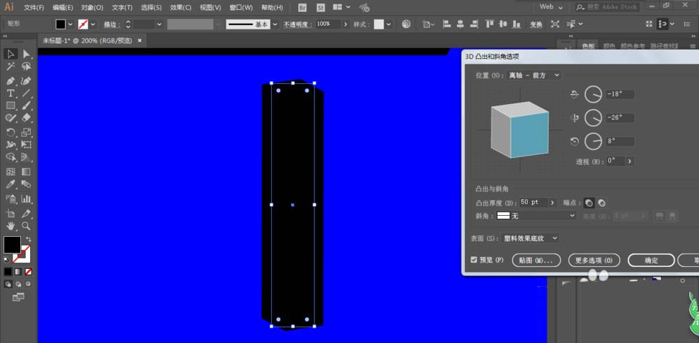 3、用矩形工具绘制长方形,使用3D凸出和斜角,填充不一样的颜色。增加阴影部分。