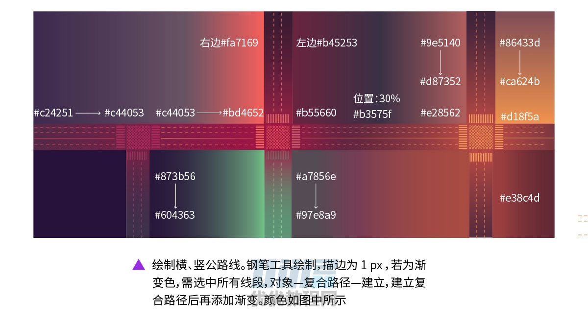 AI巧用渐变绘制炫彩俯瞰透视建筑插画教程分享给大家!本次教程内容主要来自 Romain Trystan的作品,我非常欣赏他对色彩运用,并且巧妙的运用了顶透视的方法体现建筑的纵深感,同时使建筑的细节更加凸显,并且运用大量的渐变造就炫彩的画面。下面让我们来学习,如何巧妙的使用渐变以及如果绘制透视建筑。这篇教程会带给大家详细的步骤。好了,话不多说,让我们开始吧!